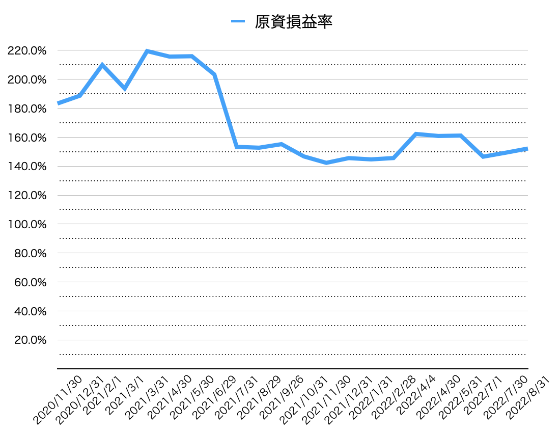 2022年8月31日時点の総評価額の最新状況です。